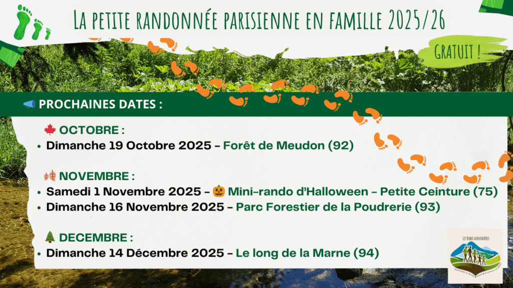 Crée par Claire Léger en Février 2023, le #petiterandoparisienneenfamille a pour objectif de proposer au moins une fois par mois une randonnée pédestre de 6 à 8 km, accessible en transports en commun et à destination exclusive des familles.